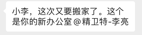 正在出差的同事,突然收到一條帶著點霸道總裁感的消息,帶著激動與疑惑點開——原來是換新辦公室了呀。